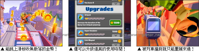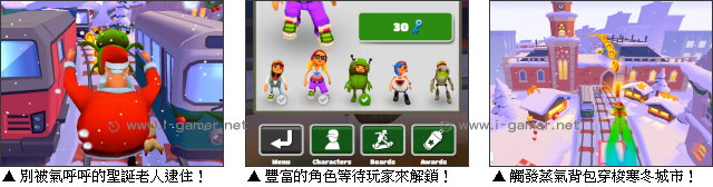 | 遊戲說明: 準備好在白雪紛飛的城市裡全速開跑了嗎?在《地鐵跑酷:冰雪奇境》遊戲中,玩家將再次跟著傑克踏上一場結合跑酷、反應力與 3D 動作的刺激冒險!這次的舞台不再是熟悉的城市街景,而是被冬季節日氣氛包圍的夢幻國度。 街道鋪滿白雪,燈飾與裝飾品隨處可見,看起來就像一張會動的美麗明信片。然而,玩家可別被美景迷惑啦!只要一個分神,你就可能會被迎面的列車撞上,或是卡在路障前,得重新再來過唷! 玩法依然是大家熟悉、卻怎麼玩都不膩的經典——透過左右移動、上跳下滑,主角就能在危機四伏的街道靈活穿梭,用更快的速度避開障礙物。另外,沿途散落的金幣與道具也千萬別錯過!  無論是可以跳得更高的大腳鞋,還是一飛沖天的噴射背包,都能在短時間內提升效率,讓收集變得更加暢快喔!而同樣繼承系列作品的,就是豐富的角色與滑板啦!玩家可以透過花費金幣和珍貴鑰匙,來替主角更換造型,搭配不同樣式的滑板,豐富一下遊戲體驗喔!  當然,我們主人公這種到處塗鴉的行為,絕對是一秒就會引來注意!就算已經換上看起來圓滾滾的聖誕老人服,胖警察和狗狗也會氣喘吁吁在後頭緊追不放喔!甚至玩家如果不小心失誤兩次,或是直接出現致命錯誤,可就會被扛回派出所好好教訓一番呢! 遊戲操作:以鍵盤方向鍵或滑鼠拖曳操控主角移動,空白鍵觸發滑板。