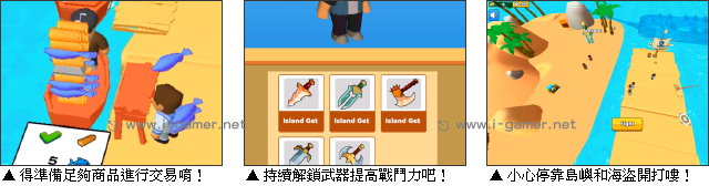 遊戲說明: 在《海洋霸主》遊戲中,玩家將從小小的一片棧板開始,藉由聰明的規劃和強大的戰力,發展成一方之王。在開始時,玩家只有孤身一人,需要揮動釣竿持續釣上大魚,來交付給在一旁等待的商人,賺取金塊。而隨著玩家反覆這樣的操作,你不僅可以購買更多的裝備,擴充販售商品,還能招聘可靠的員工,提高工作效率,讓資產無限擴大。  不過要注意的是,除了商業這塊,海盜也是你需要關注的重點!當船隻靠近,或要跨上島嶼,玩家和員工就會搖身一變成為驍勇善戰的士兵,和這些貪婪的傢伙一拚生死啦!喜歡經營和冒險的你,現在就來挑戰一下吧! 遊戲操作:以鍵盤 WASD 鍵或滑鼠拖曳操控主角移動。
