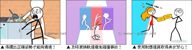 | 遊戲說明: 愛搞怪的火柴人準備要來挑戰玩家的反應力啦!在遊戲中,玩家需要藉由點擊,快速切換火柴人的姿勢或是手上的物品,以應付迎面而來的一堵堵高牆。在開始的基本關卡中,玩家只要讓火柴人符合不同形狀的缺口即可。但隨著通過的關卡越多,還得讓火柴人拿上不同的道具送送禮物,修修水管,使事件正確發生。 另外,《火柴人愛穿牆》不只單純考驗你的技巧和手速,還擁有滿滿的趣味性,超多莫名其妙的關卡,超級適合憂鬱的你好好紓壓一下。而有時適時地出錯,還能欣賞火柴人出糗的各種情境劇,玩家可別錯過嘍!現在就和火柴人一塊爆笑穿牆宇宙吧!  遊戲操作:以滑鼠操作進行遊戲,左鍵點擊變換姿勢。