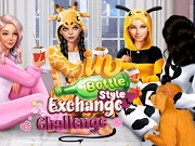 | 遊戲說明: 故事就從一個無聊的週末夜開始——芭比、星期三和其他兩位好友,決定來玩一場轉瓶子遊戲,不過這次轉到的那位可不是向誰告白,而是要交換穿搭風格唷!  原來,這幾個女孩都有自己堅守的特色,例如芭比是粉紅控,喜歡一切夢幻的事物,而星期三則堅持她的黑色哥德風。但這下無論是誰,只要被瓶子轉到,都被要求和其他人交換風格啦!甚至這個風格可不限於穿搭唷,就連化妝手法及用色都要跟著改造呢!究竟最後這四位女孩會以什麼模樣登場呢?就讓我們拭目以待吧! 遊戲操作:以滑鼠操作進行遊戲,點擊服裝、髮型、化妝品裝扮女孩們。