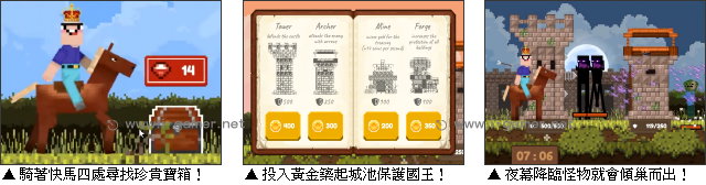 它們會毫不留情破壞你的建築,試圖突破搭建起來的防線!所以想讓防線更加穩固,玩家就需要花費黃金,在指定位置建造包括弓箭塔在內的防禦設施。不過這黃金要從哪來呢?除了自動流入的稅收,玩家也可以考慮開鑿幾個礦洞,試著讓金流更加穩定喔!究竟在你的策略下,菜鳥國王可以支撐幾個不眠夜呢?現在就來挑戰看看吧!