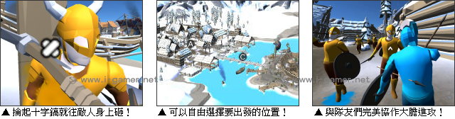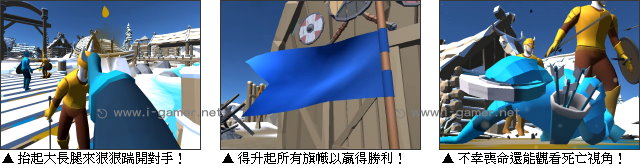 所以玩家必須與你的電腦隊友們進行完美協作,例如在弓箭手箭雨遮擋下衝鋒破陣,或是利用地形發動奇襲。每次成功升旗或是擊殺敵軍,都可以累積經驗,進而升級角色,甚至解鎖全新的武器唷!