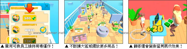 | 遊戲說明: 在《健身商場大亨》遊戲中,玩家可不是準備前往健身房的那位,而是作為這體育經濟的幕後大魔王,從小小的店面起家!在開始,玩家手邊甚至只有一個貨架可以操作。你需要一邊前往倉庫搬運沉甸甸的蛋白粉來上架,一邊帶著笑容為來訪的顧客們結帳。 每天都會有想變壯、想變健康、或只是想補一下精神的客人上門,你要做的就是用最高的效率,把錢從他們的口袋中撈走!遊戲擁有幾個不同的等級商鋪,等待玩家來體驗。但在那之前,你需要先將眼前還沒被解鎖的區域開啟! 它有可能是新的商品陳列架、有可能是提升顧客滿意度的 FULLNESS 區,也可能是一條通往全新店面的通道。不過隨著店面擴大,之前的繁瑣工作當然也就可以交出去嘍!試著雇用可靠的收銀員或是補貨員,維持商場正常運作,再投入一點資金替他們升級,例如強化移動速度、每次補貨數量等等,來讓節奏更加順暢。  另外,如同之前提到的,每次升級玩家都會獲得新的挑戰。不僅是店面擴張,商品也會從最初的蛋白粉一路開到壺鈴、器材、甚至更專業的健身補劑,讓你感受到真正的擴張力量!準備好讓你的商業腦袋跟著一起練壯了嗎?現在就踏出你夢想的第一步吧!  遊戲操作:以鍵盤 WASD 鍵或方向鍵或滑鼠拖曳操控主角移動。