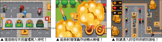 遊戲操作:以滑鼠操作進行遊戲,點擊空地設置砲塔。