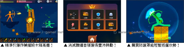 你可以升級弓的拉力、射擊速度或血量,也能在戰役中投資道具——例如頭盔可以擋去致命一箭、盔甲將化身防護罩,或乾脆買爽度超高的一發三箭,瞬間讓戰場滿天飛箭,打得對手無力招架。