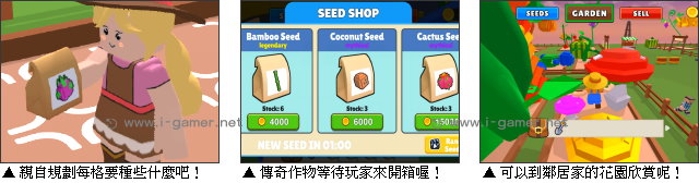 | 遊戲說明: 準備好親自打造你的夢想農場了嗎?這款取材自創下 Roblox 超高在線人數《培養花園》(Grow a Garden)的《我的花園之旅》將陪伴玩家,度過超療癒的綠手指時光。這次,再也不用擔心作物種不活啦,在這萬物皆可種的肥沃土地上,玩家只需要擔心種出來的草莓大得像籃球,或是莫名其妙閃得像七彩霓虹燈,讓人看了就眼花! 在遊戲開始,玩家要做的事情相當簡單,就是花掉手上少少的現金,買進超級基礎的胡蘿蔔,並且看看哪格算是風水寶地,更適合種這兔子的最愛!而在讓種子安家之後,玩家不需要額外的操作,只要等待就可以啦! 就算臨時有事要暫離也不用擔心,你的作物會隨著時間持續茁壯,等待玩家回來收割。至於這些收成要怎麼處置呢?當然就是賣掉再購買更多種子或解鎖新內容,不斷循環嘍!  不過有趣的是,雖然種子都是一樣的,但長出來的模樣卻大相逕庭。有的是一株長三顆小寶寶,而有的則是一枝獨秀,甚至秀過頭,大到你舉起來還會搖搖晃晃,或是像被施了冰封魔法、煉金術,直接成為異世界的產物!  而隨著進度推進,玩家還能投入更多資金開箱傳奇作物,看看能種出個什麼玩意。不過既然是傳奇,要等的時間當然也就更久嘍!此時你不妨敦親睦鄰一下,參觀參觀隔壁鄰居家的超豪華花園,欣賞不同風格的農場配置,當作小小的靈感來源。另外,如果覺得看膩現在的造型,遊戲也提供了各種迷因造型,玩家可以花點資金解鎖,豐富下體驗喔! 遊戲操作:以鍵盤 WASD 鍵或方向鍵移動,空白鍵跳躍,滑鼠左鍵移動視角、收穫作物。