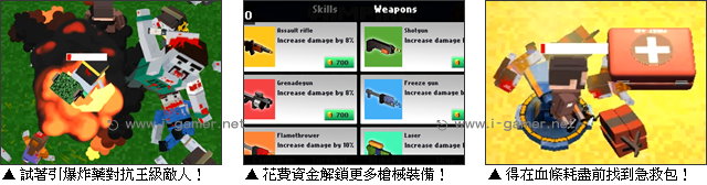 | 遊戲說明: 在這款完美致敬經典《吸血鬼倖存者》與《我的世界》元素的肉鴿遊戲中,玩家將來到這個充滿殭屍與不死怪物的瘋狂世界,為了活下去而不斷奔跑。這裡沒有安全區,也沒有庇護所,在還不夠能力回擊的情況下,玩家能做的,就只有發揮風騷的走位,努力打帶跑。 遊戲分為戰役及生存模式兩種。前者玩家需要應付包含魔王級角色在內的16波攻勢,後者則要挑戰活過20分鐘。不過無論你選擇的是哪個模式,只有勝利條件差異,其餘玩法都是相同的。 在剛踏入戰場時,你需要擊倒妄圖近身的怪物,以從它們身上取得能量球。要知道,這些可是成長的關鍵唷!玩家只要填滿能量條,就可以獲得升級,從多種技能與武器中自行選擇一項,並逐步堆疊出屬於自己的戰鬥風格。  你可以使用機槍、霰彈槍掃射敵群,也能解鎖火焰噴射器、雷射等高破壞力武裝,甚至施放大範圍磁場或引爆炸藥,瞬間清場,越到後期,爽度越高唷!不過火力再強,還是要顧好血量,如果太低記得找到急救包觸發,否則再華麗的配置都可能一瞬間瓦解呢!  另外,每當你完成當前地圖的挑戰,就可以解鎖全新區域,感受更不一樣的風格,喜歡這種在怪海中掙扎求生,苟到最後享受成長與爆發的你,可千萬別錯過這款《吸血鬼倖存者》啦! 遊戲操作:以鍵盤 WASD 鍵或方向鍵移動,空白鍵射擊。