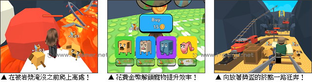 | 遊戲說明: 在《Obby:岩漿大逃殺》遊戲中,為了生存,玩家能做的就是在下一波攻擊前,努力爬到最高處!這是一場與時間賽跑的殘酷競賽,每過一定秒數,玩家的腳下就會翻湧著致命的岩漿,只要稍有遲疑,就會瞬間被灼熱的火海吞噬,得在血條耗盡前趕緊爬到安全區域。 不過玩家也不用太過緊張,在這座峽谷裡設置了各式各樣的機關。只要你的身手夠矯健,順利爬上旋轉木馬塔頂,或是雲霄飛車的軌道,又或者是搭上摩天輪,都能保全一條小命唷!不過生存還只是中間目標。看到遠處閃著亮光的獎盃了嗎?玩家只要順利抵達該處,就能抱回獎盃,甚至在之後解鎖全新的地圖喔!喜歡跑酷類遊戲的你,可千萬別錯過啦!  遊戲操作:以鍵盤 WASD 鍵或方向鍵操控主角移動,空白鍵跳躍。