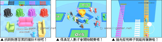 準備好將腦力化為行動力了嗎?在《爬梯知識王》遊戲中,玩家需要發揮你的智慧,解開眼前的題目,才能找到正確顏色的木板,搭建出一個可以爬到最高處的梯子。遊戲採用即時競賽方式,必須湊足人數後才會正式開始。