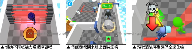 | 遊戲說明: 作為從有意識,就一直生活在這個不見天日實驗室中的變異人,你原本只是數據的一部分……不過就在某天,你發現自己獲得了特殊能力!為了逃離這監獄一般的生活,你必須小心避開來回巡邏的保全,並且趁機竊取能夠觸發變異的輻射溶液作為之後的保障。 遊戲的玩法相當簡單,玩家每輪可以選擇三種不同的能力搭配。你需要聰明使用它們來通過雷射電網、公牛衝撞,以及嚴密的監視!但要注意,如果被保全發現,身上也沒安排到可以制服他的能力,就只能發揮風騷的走位,試著在打開閘門之前甩掉他嘍!究竟變異人的自由號角,能否被吹響呢?快來試試吧!  遊戲操作:以鍵盤 WASD 鍵或方向鍵移動,R、E、Q 鍵使用特殊能力。
