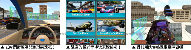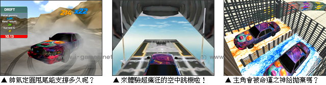 另外,這裡還有關於飛機的各種挑戰,玩家時而需要追逐正準備起跑的航班,時而正處於離地三萬呎的高空,在不綁降落傘之類設備的情況下,大膽一躍而下……當然,安全點的還是有!喜歡甩尾的你,這裡也提供了幾個場地,玩家可以在封街狀態下,盡情享受定圓漂移的樂趣唷!