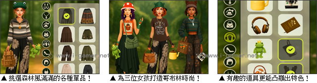 | 遊戲說明: 超酷的哥布林風現在也吹到時尚界啦!不過這裡的哥布林可都是小美女,她們和森林系有點類似,但又更加狂野,瘋狂迷戀關於青苔、蘑菇、毛衣和各種動物道具及關於森林魔法的一切。現在,身為造型師的你,就發揮專業,為眼前的三位女孩,打造專屬於她們各自的哥布林穿搭吧!  喜歡帽子的,可以提供蘑菇帽、青蛙帽和其他相對樸素的針織帽,喜歡粗針毛衣的,這裡則有你能想到的各種花色……而至於道具,一籃子新鮮的蘑菇夠不夠?不然我們還能帶上可愛的青蛙王布偶,又或者是日記本、顏色超柔和的水壺等等天馬行空的小玩意呢!快來欣賞一下最終的哥布林裝扮吧! 遊戲操作:以滑鼠操作進行遊戲,左鍵點擊道具裝扮女孩。