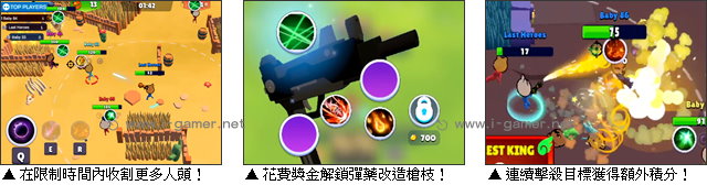 玩家可以自由選擇三種不同特性的子彈改造你的槍枝,如果覺得還不夠強,也能投入獎金解鎖全新的彈藥,讓攻擊流派變得更加複雜喔!另外,如果覺得場面太混亂,想先苟一下,旁邊的草叢就是你最完美的小窩啦!喜歡快節奏亂鬥、想看動物們大顯身手的你,現在就加入這場超鬧的森林戰爭,證明自己才是真正的戰場之王吧!