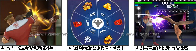 準備好進入拳擊、空手道與摔角熱血碰撞的競技世界了嗎?不過在正式和各路好手對上前,基本訓練還是要有!玩家可以透過重量訓練或是跑步來提高自己的體能,也能花點小錢,直接飛躍好幾個等級。而在戰鬥正式開展後,過程更是細節滿滿!難纏的對手將輪番上陣,玩家可千萬別被對方華麗的拳腳功夫甚至地板動作迷惑嘍——抓準時機擺出防禦姿勢抵擋才是王道。