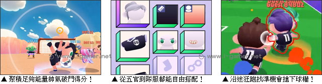 另外,除了激烈的賽事對抗,玩家也能自訂選手風格。從五官長相到鮮艷的隊服,通通都能自由搭配,只要你手邊解鎖足夠多款式喔!無論你是想在網前將難纏對手鏟倒,還是想靠著神級走位搶下球權,這場魔性的足球大賽絕對讓你熱血沸騰。現在就穿上你的戰靴,踏上這個充滿驚喜的球場,跟隊友們一塊揮灑汗水,熱情開踢吧!