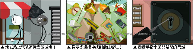 | 遊戲說明: 超倒楣的火柴人又來啦!在這次的《火柴人逃脫故事》遊戲中,玩家可以發揮你的聰明頭腦,體驗兩條不同玩法的劇情線。不過無論是監禁逃脫還是荒島求生,玩家的唯一目標,就是讓他可以毫髮不損的重獲自由,回到平凡的日常。在第一個故事中,火柴人走著走著,就被歹徒蓋布袋套走啦!  為了從神秘的房間裡逃出,他需要盡可能做出正確的判斷……雖然這線索從明面上來看,完全沒什麼脈絡可循!但玩家也不用太擔心,即使不小心被歹徒抓到,甚至挨上兩槍,下一秒火柴人又會像啥事都沒發生一樣,回到上一個選擇繼續旅程唷! 而在第二個故事裡,火柴人則毫無緣由的出現在一座孤島。他必須利用手邊的各種道具,找到能夠返回文明的方法。不過這些道具多是多,看起來卻都有些詭異……其中甚至還有鈴鐺、滅火器等等,在使用會發生什麼事,真的讓人摸不著頭腦!  不過無論如何,根據玩家的選擇,屬於火柴人的故事都有豐富的寫法,他可能迎來逃出生天的結局,也可能墜入另一場陷阱。現在就跟著他,一塊展開充滿陷阱與謎團的逃亡之旅吧!火柴人的命運,就掌握在你的手中唷! 遊戲操作:以滑鼠操作進行遊戲,左鍵點擊選擇道具觸發事件。