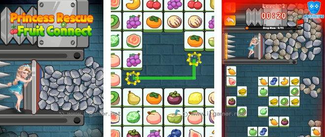 在益智遊戲《公主救援:水果連線》中,玩家需要找到相同的水果相互連接,才能使它們消失。但如果中間隔著其他水果,或是得拐過幾個角,這條線可就無法成立唷!另外,先處理哪區也是重點。玩家如果先清出一個空間放置碎石,公主就能稍稍往另一側移動,擠出更多時間唷!快來成為拯救公主的英雄吧! |