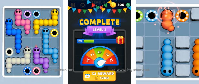 在《小蛇入洞》這款益智遊戲中,玩家需要控制不同顏色的小蛇,沿著狹窄的通道移動,避開障礙、找到對應的出口離開。乍看之下好像很簡單,但隨著通過的考驗越多,同場需要處理的蛇量也會暴增,更不用說通道被擠得水洩不通……想要讓牠們全都順利抵達目的地,可需要好好安排一番才行呢!