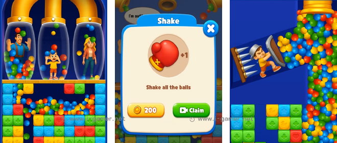 在《球困一家人》遊戲中,小男孩和爸媽一塊參加了一檔看起來有點危險的闖關節目。在限制時間內,會有數不清的小球從天而降,塞滿這家人所在的空間。為了不被淹沒,他們需要在有限的次數內,打造一條可以引流的管道,讓小球順著掉落下去。