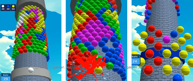 動動你的手指,讓高聳入天的石塔速速轉起來吧!在《3D泡泡塔》遊戲中,玩家需要投擲指定顏色的小球,利用三消原則,來清除沿著塔身蔓延的泡泡牆。不過要注意的是,玩家能投的球數量有限,一旦耗盡就會宣告失敗!