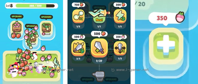 當你累積越多數量和種類,將等級持續往上堆,玩家除了可以擴張果園、購入更多水果,還能強化手上這把劍,讓它的效率再提升喔!簡單的操作,最適合想放空大腦的瞬間!快加入這場水果大戰,看看能把果園經營到多大規模吧!
