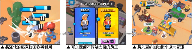 遊戲說明: 想體驗從撿破爛翻身成石油巨頭的樂趣嗎?這款《廢棄加油站》絕對是你夢想的起點唷!在遊戲開始,玩家將接手荒廢多年的老舊加油站。放眼望去除了垃圾還是垃圾,就連一台正經的加油機都看不到。而你的任務,就是親手將這一切翻新成賺錢又人氣滿滿的加油站。 先從清理開始吧!揮舞背上的工具,你可以粉碎地上的舊零件、廢玻璃,從中找到仍有剩餘價值的回收。但也不是所有的東西都能被你輕易摧毀,例如較大的木箱或是鐵架,就需要玩家升級之後,才能取得威力更強的破壞槌處理。 而等到亂七八糟的環境清出一小條車道,也順利購入第一台加油機後,玩家就可以開始營業啦!幸好這個地點車潮繁忙,玩家只要勤勤懇懇的替它們一一加油,就能快速累積到足夠資金,可以雇傭員工接手繁瑣工作,或是開放更多車道和更多機器嘍!  一旦有了足夠的人潮,那麼便利商店也可以開起來!畢竟想賺錢,就得製造各種需求來掏空客人的口袋嘍!但別忘了,貨架要隨時保持充足,不然敗興而歸的他們,下次再來訪可不知是何年何夕了。  另外,除了主場景,玩家還能探索其他地點。其中,廢車場不僅堆滿了可以用來兌現的廢棄物,還可以解鎖加工機,把廢料再製成鋼筋,成為打造新設施的重要資源。甚至隨著等級提升,傳說中的外星人也會登場,可以好好來一場星際交易唷!喜愛模擬經營遊戲的玩家,現在就來打造屬於你的石油王國吧! 遊戲操作:以鍵盤 WASD 鍵或方向鍵或滑鼠拖曳角色移動。