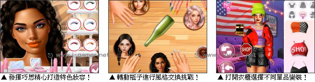 | 遊戲說明: 故事就從一個無聊的週末夜開始——芭比、星期三和其他兩位好友,決定來玩一場轉瓶子遊戲,不過這次轉到的那位可不是向誰告白,而是要交換穿搭風格唷!  原來,這幾個女孩都有自己堅守的特色,例如芭比是粉紅控,喜歡一切夢幻的事物,而星期三則堅持她的黑色哥德風。但這下無論是誰,只要被瓶子轉到,都被要求和其他人交換風格啦!甚至這個風格可不限於穿搭唷,就連化妝手法及用色都要跟著改造呢!究竟最後這四位女孩會以什麼模樣登場呢?就讓我們拭目以待吧! 遊戲操作:以滑鼠操作進行遊戲,點擊服裝、髮型、化妝品裝扮女孩們。