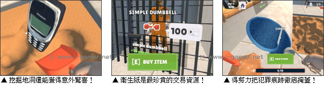 | 遊戲說明: 受到許多玩家和直播主熱愛的挖洞遊戲,這次結合了越獄元素,準備給你滿滿的刺激啦!在這款《越獄模擬器》遊戲中,玩家作為不知道犯了什麼罪,但總之需要關到天荒地老的囚犯,為了重獲自由,只能出此下策,利用手邊的各種工具,努力挖出一條地洞逃出。 但想要挖土是容易,挖出地道可有點難度!尤其在開始,你的手上就只有一把用餐時偷偷藏起來的小湯匙……但幸好,這裡的獄警都很上道!不僅巡邏的時間相當固定,甚至還會背著上級,和你來點私密交易,讓玩家可以獲得監獄中最珍貴的流通貨幣——衛生紙! 是的,你沒看錯,在這裡,玩家如果想向其他獄友換取高階工具,像是更像樣的鏟子,更大的背包,或是能爬得更快的繩子等等,都需要交付指定數量的衛生紙。  但這衛生紙要怎麼取得呢?如同之前提到的,和獄警交易!在玩家拉開地毯,不斷狂挖的路上,總是會遇到幾個奇奇怪怪被埋在地下的物品。內容可以說千奇百怪,像是手機、泡澡用的黃色鴨子,又或者是一顆皮球?  不過無論它們是啥,只要將這些雜貨放在桌板上,再叫來獄警,就可以順利交易嘍!但要注意的是,如果你還沒徹底湮滅犯罪證據,被獄警的火眼金睛發現……那麼之前累積的進度,可就會徹底被清空,得從平地再開始挖起啦!玩家要多多注意喔! 遊戲操作:以鍵盤 WASD 鍵移動,空白鍵向上爬,E、X 鍵互動,Q 鍵暫停,滑鼠左鍵拾取物品。