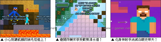 | 遊戲說明: 怪物學院的上課鐘聲再次響起!菜鳥、老手、終界使者還是上帝,準備好接受白眼史蒂夫(Herobrine)指導了嗎?為了在我的世界裡順利存活,你需要和其他學生一塊,努力通過3種課程! 課程內容相當多變,從跑酷、滑水道到神射手,每個項目可都不簡單!不過玩家也別太擔心,你能嘗試的機會就跟學生一樣多,甚至就算全部失敗了,拿下最糟糕的F判定,也還是可以順利進階到下一個課程唷!喜愛我的世界遊戲的你,千萬別錯過這個惡搞滿滿的《我的世界怪物學院2》嘍!  遊戲操作:以鍵盤 WASD 鍵或方向鍵進行,根據畫面指示完成課題。