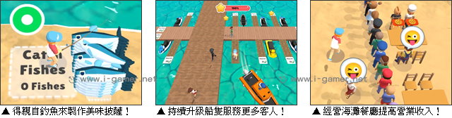 | 遊戲說明: 準備好來到微風徐徐的度假海岸,打造屬於你的海灘事業了嗎?在這款模擬經營遊戲《度假海灘大亨》中,玩家將從一開始的小規模出發,慢慢擴張版圖,看著原本樸實無華的海灘,逐漸變成熱鬧非凡的度假勝地! 不過想賺錢,可不能單單只是賣美麗的風景。玩家得先購入第一隻船,並且在裝滿油的情況下,讓顧客開出海炫一波。 而隨著你累積的資金愈加富足,除了購買更多遊艇,服務更多客人,也能展現釣魚技術,製作美味的海鮮披薩,擺上幾張桌子,開個精緻的小巧餐廳喔!究竟在你的經營下,這片你承包的海灘,可以開出什麼樣的經濟果實呢?讓我們拭目以待吧!  遊戲操作:以鍵盤 WASD 鍵或方向鍵移動,滑鼠點擊選項互動。