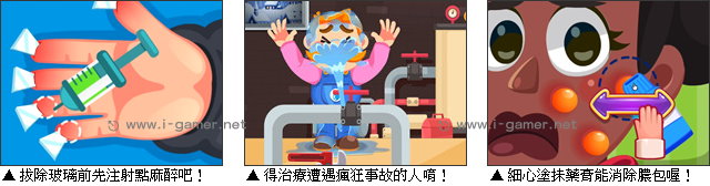 遊戲操作:以滑鼠操作進行遊戲,左鍵點選道具進行手術。