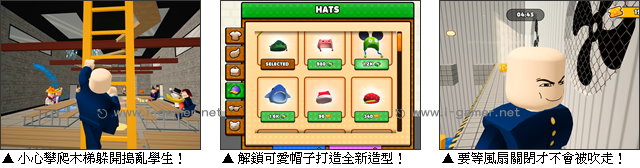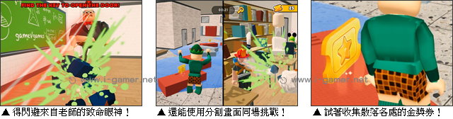 | 遊戲說明: 受夠老師的碎碎念了嗎?現在就展開一場大膽又刺激的校園逃亡吧!在《翹課大作戰》遊戲中,玩家需要想方設法逃離魔鬼校園。 不過除了挑戰自我最短用時,玩家也可以拉上好友組成逃學聯盟,利用分割畫面的功能同場較勁,一起大鬧校園唷!為了生存下去,玩家必須穿梭偌大校園,閃避各種莫名其妙的陷阱和機關,才能悄悄繞過所有會阻擋你奔向自由的老師們。  但別以為跑得快就夠了,光是要從教室溜到走廊,玩家不僅需要先找到藏起來的鑰匙,還得時刻閃避來自老師的致命眼神……要知道,被紅光掃到的瞬間,玩家就會立即粉身碎骨,沒有反抗的餘地喔!  另外,在逃亡途中,玩家也別忘了收集亮晶晶的金獎券,這些可以用來解鎖可愛的配件,讓角色變得更加獨特呢!快拋下沉甸甸的書包和寫不完的作業,體驗讓人心跳加速的校園大逃殺吧! 遊戲操作:P1- 鍵盤 WASD 鍵移動,空白鍵跳躍,Shift 鍵奔跑。P2- 鍵盤方向鍵移動,L 鍵跳躍,K 鍵奔跑。